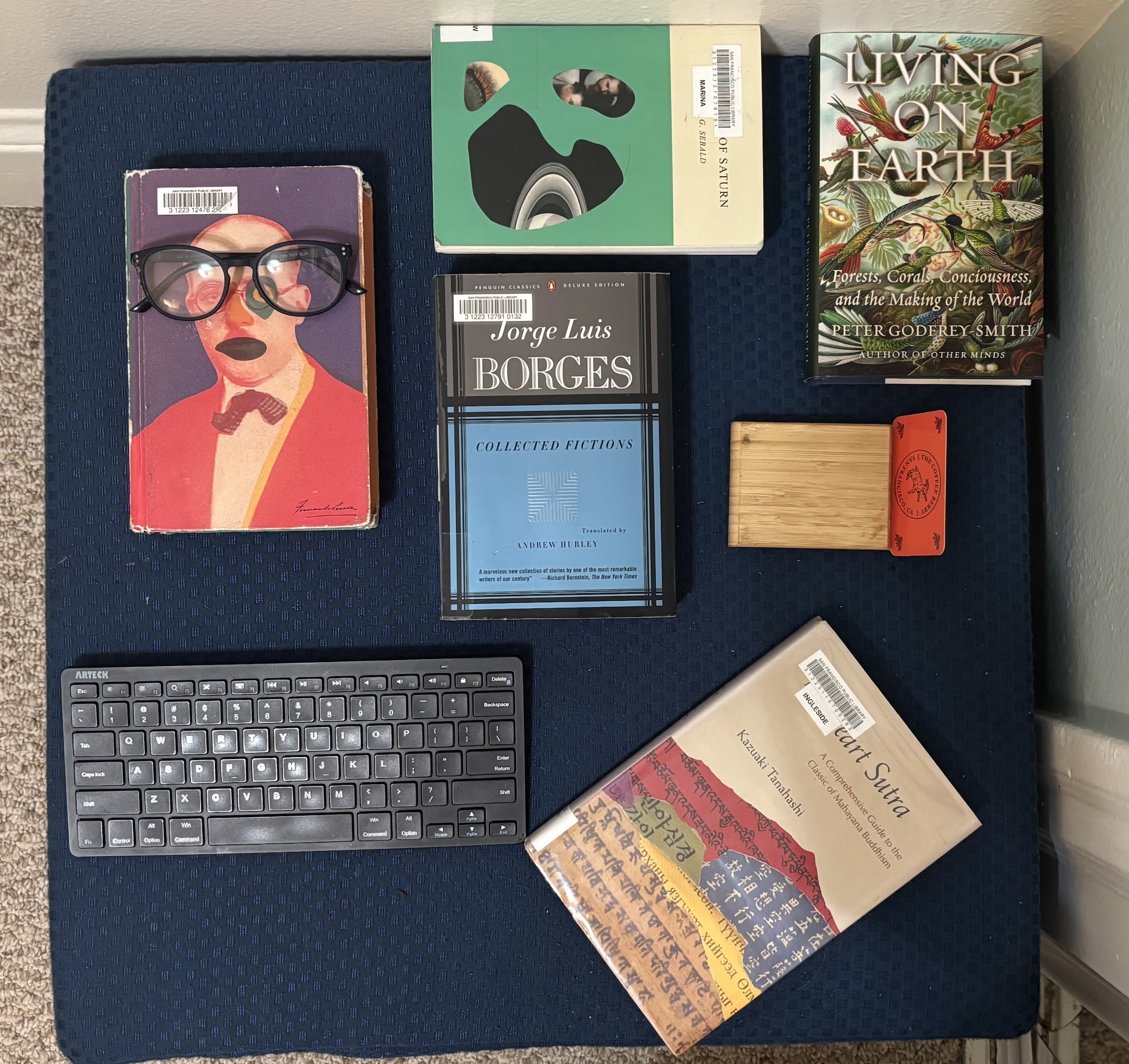 [ My selection of books, these days, for bringing with me on my walks... ]