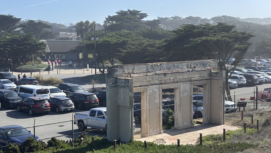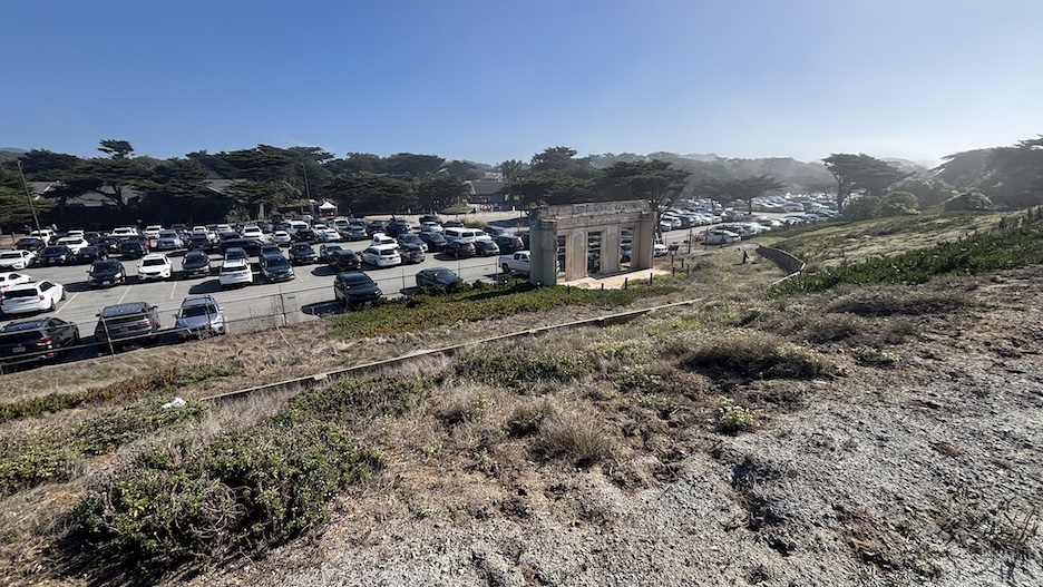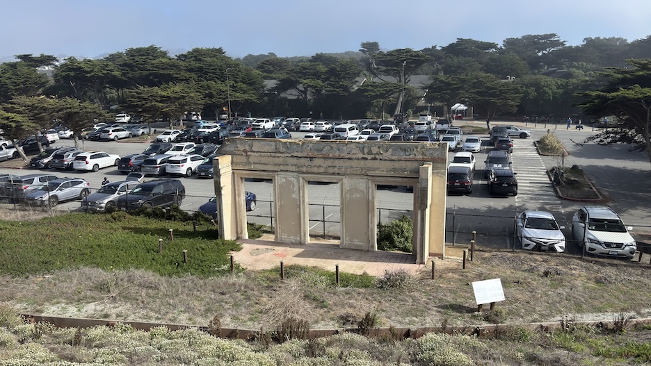As San Francisco oldtimers know, the parking lot area was once the site of the Fleishhacker pool which, when it opened exactly a century ago was touted as the largest outdoor swimming pool in the country. The arch is the only thing remaining of the old bathhouse, as the whole thing was finally torn down in 2012, even as the pool itself was paved over in 1999, after decades of neglect and misuse from the early 1970s on.