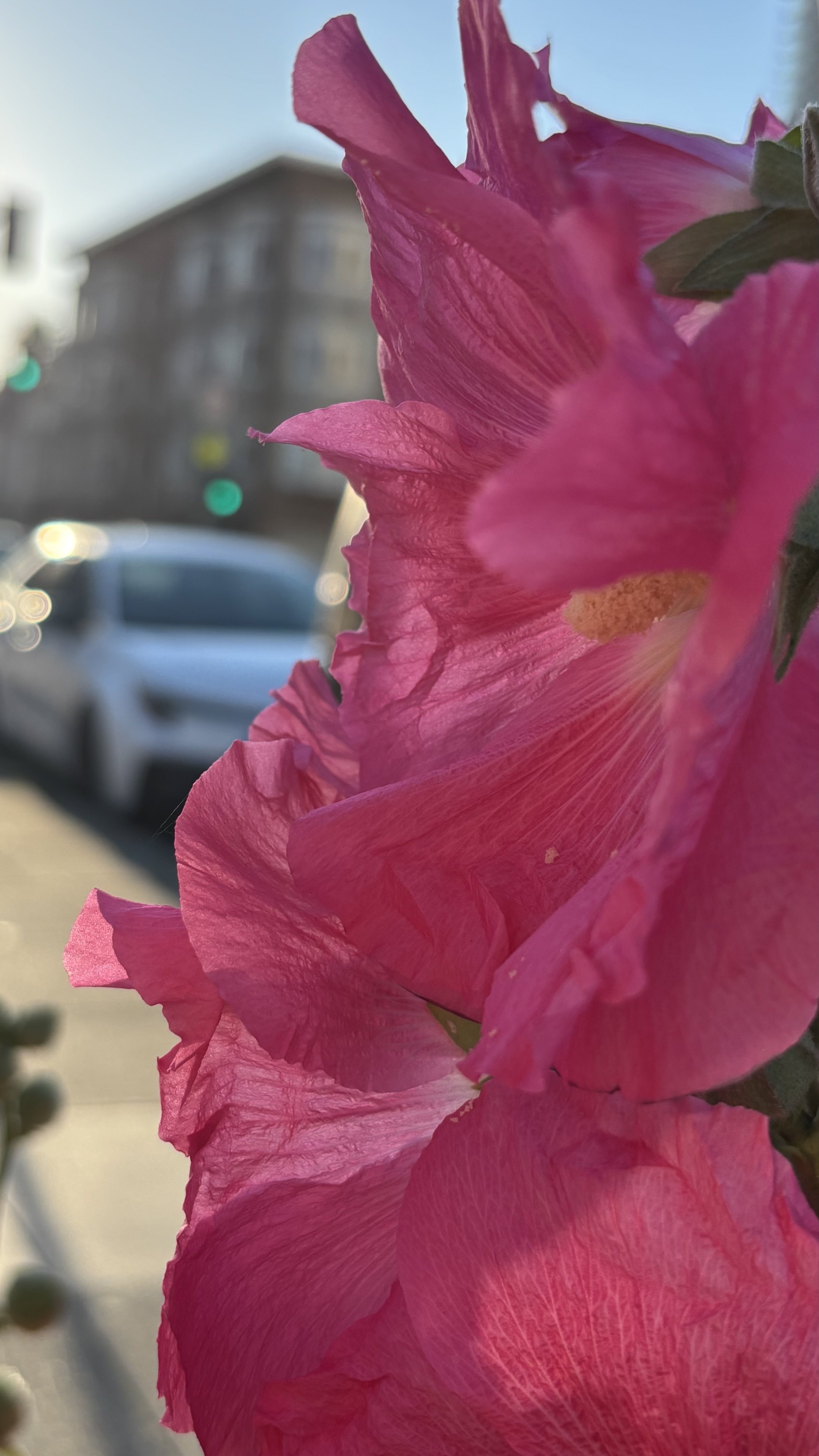 And, lo and unceremoniously to behold, the flowers' heretofore nondescript color had somehow miraculously transmogrified into this fantastic swirly magenta, one visually and nostalgically redolent of my Maui tropics, acquiring a glammed-up hue that was both translucent and opaque at one and the same moment and so, finally, reminding me that I have always loved the acutely slanted lightrays of early morning and gathering dusk, transforming as they do things into the dense and color-saturated objects they truly are.
