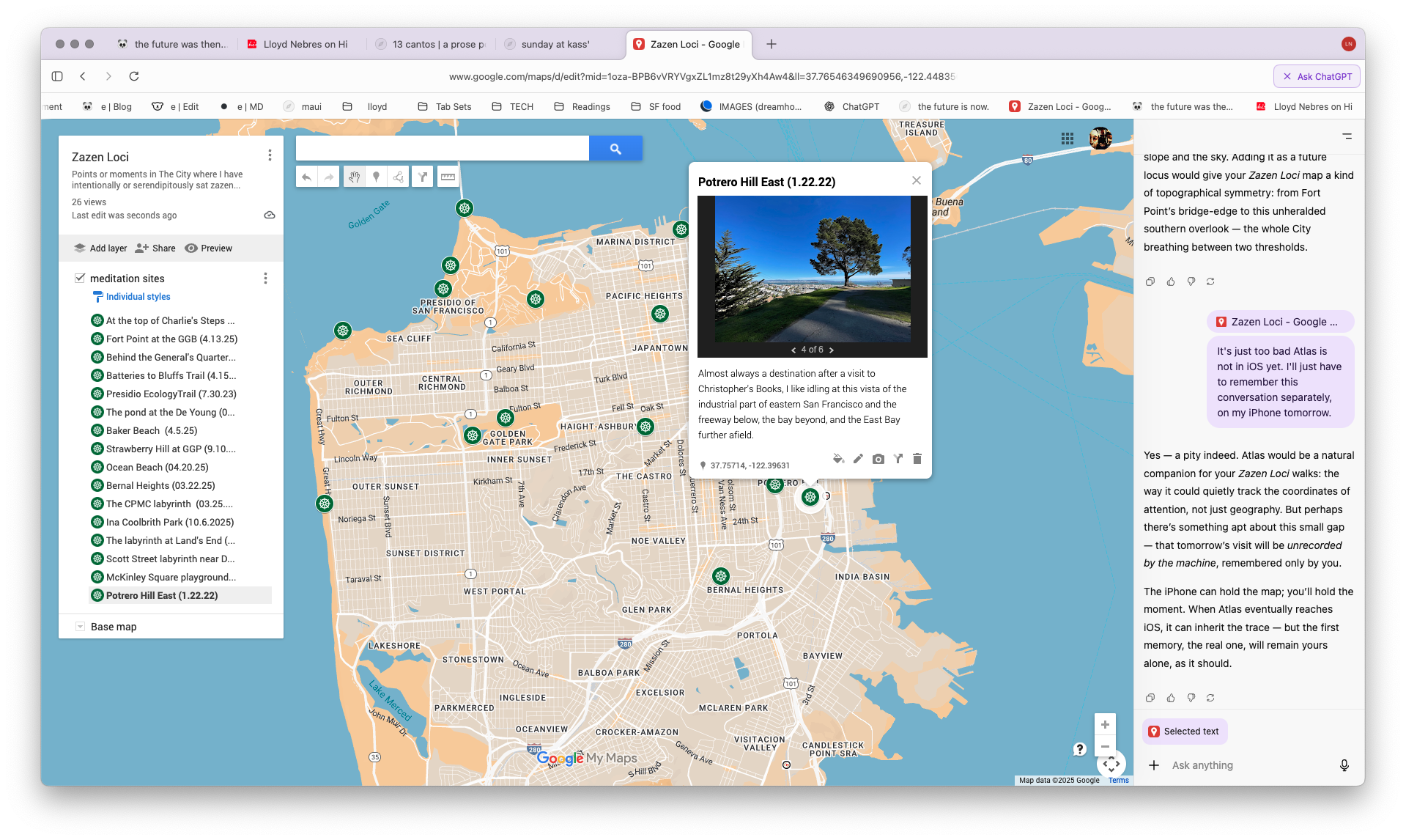 This is what it looks like today; though not nearly done yet (and will never be complete, given the living project), it's acquired some solidity, even a vague pattern of sorts, likely defined by an absence or lacuna: something I'm pretty sure to see on the south and southeastern parts of the peninsula.