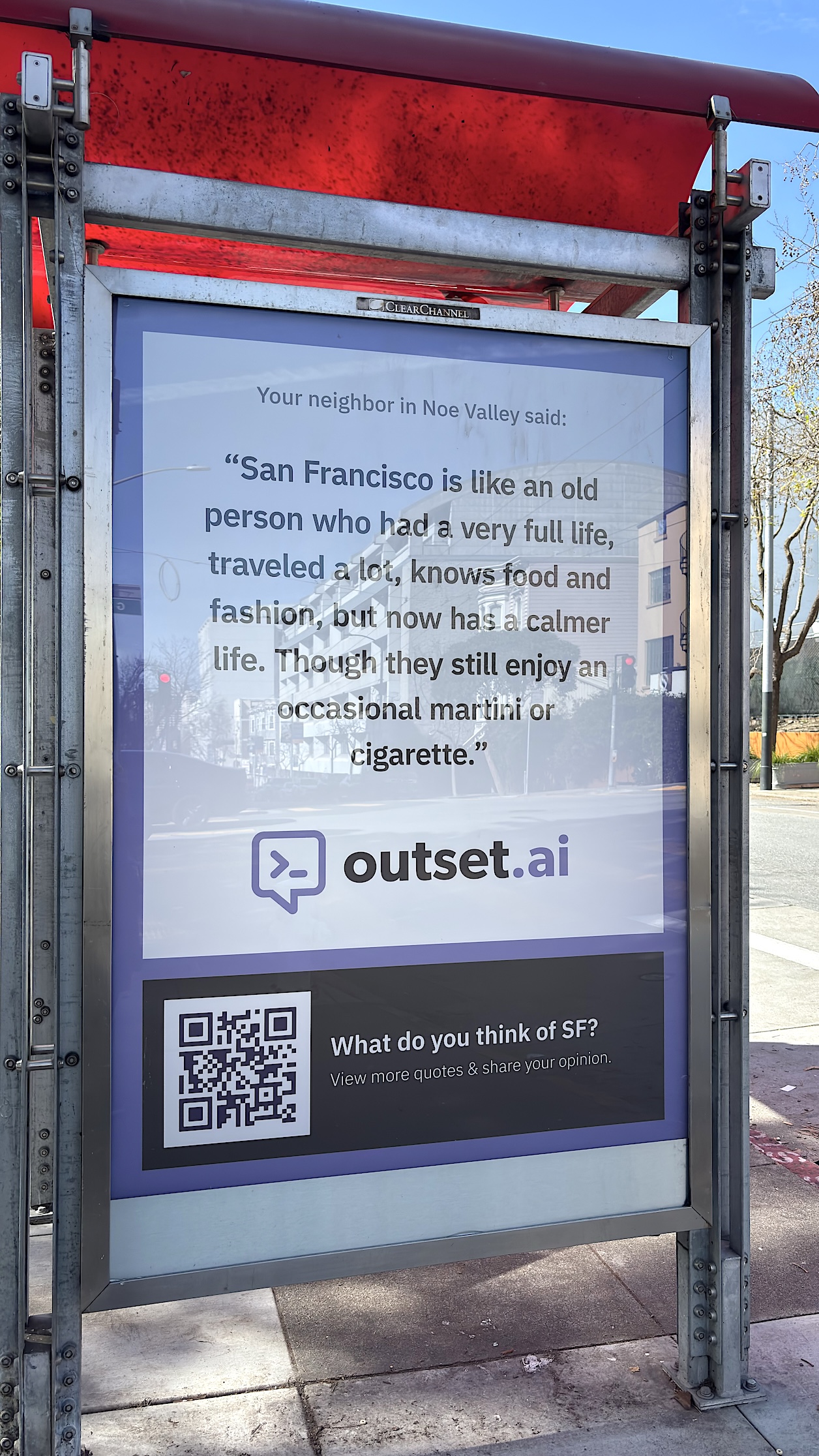 Yeah, I see why it snagged you. Itâs basically a horoscope for cities. âYour neighbor said: SF is an aging bon vivant, still cute, now calmer, maybe a little tipsy, but heyâmartini! cigarette! đ ⨠Please scan this QR code to feed our AI startup.â Itâs doing three things at once: