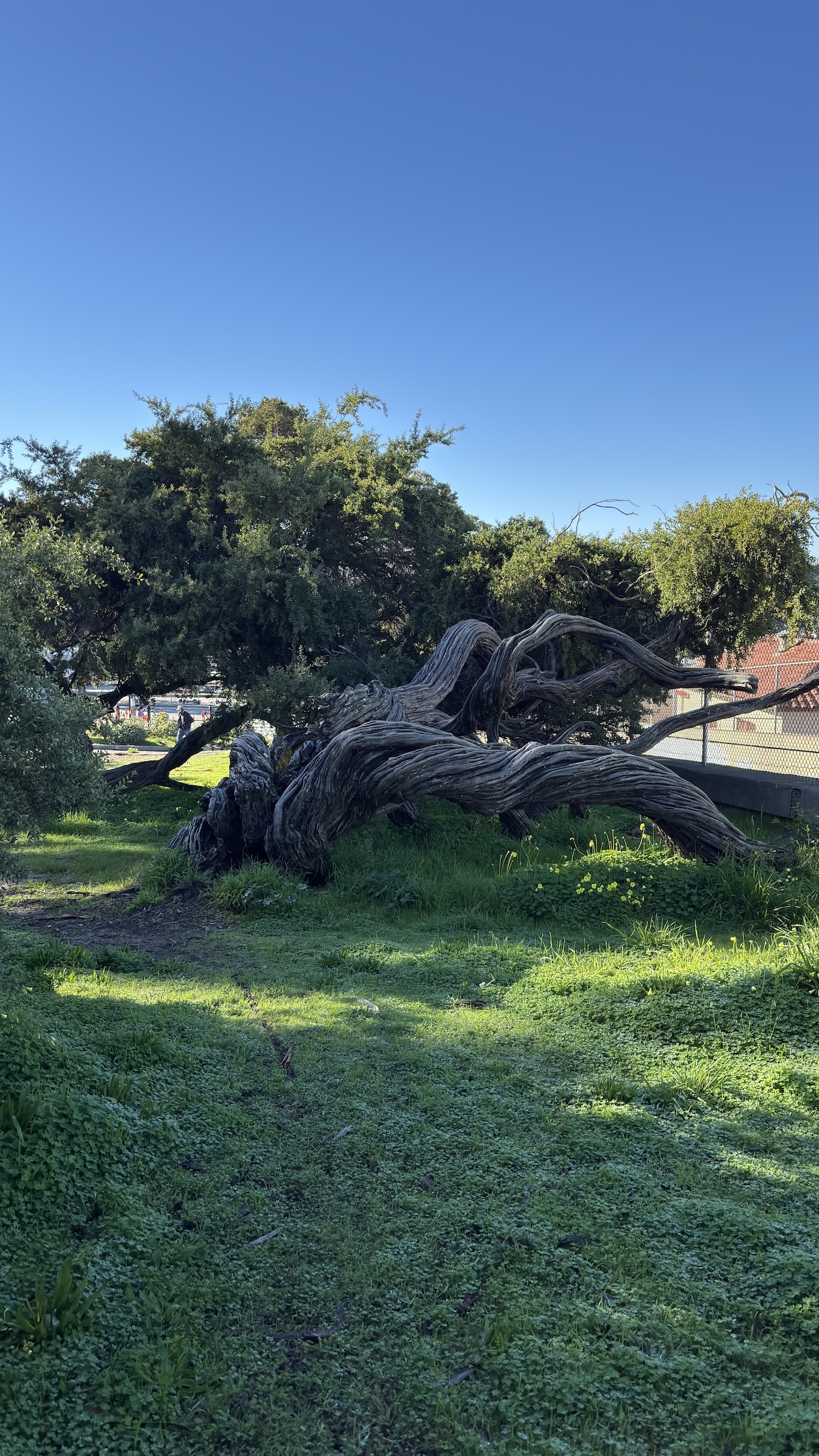 Those tea trees, just like the ones a block away from home at the Larkin Street steps up to Francisco Park, and the clusters of them at various parts of Golden Gate Park, are — with their distinctive ground-hugging trunks — nothing if not 'entities.' Or, ents. ::chuckle::
